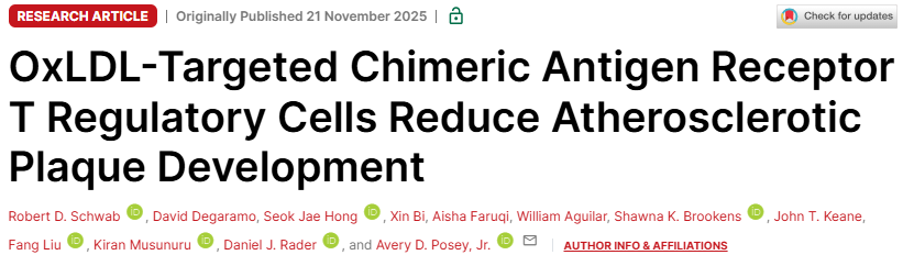 - Chimeric antigen receptor (CAR) Tregs suppress inflammation and plaque formation driven by OxLDL