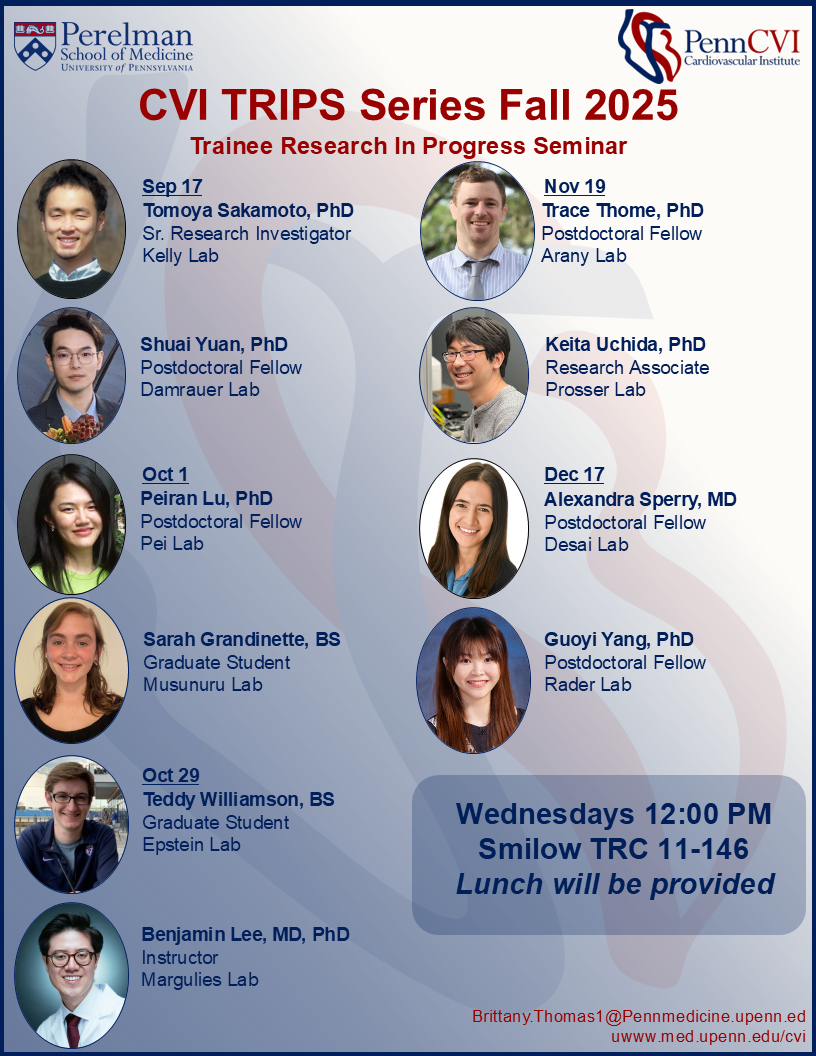 CVI TRIPS Seminars for Fall 2025 will be held at 12:00 PM in Smilow TRC 11-146.