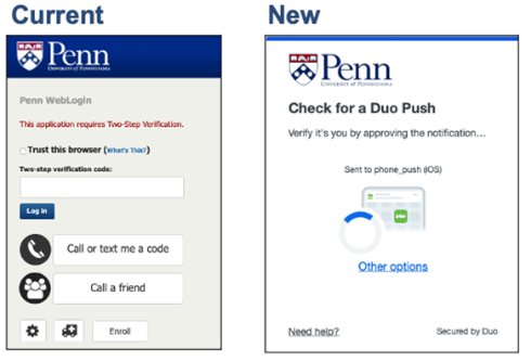 - Users will see the new Duo Universal Prompt UI instead of the current Penn custom interface during PennKey WebLogin: